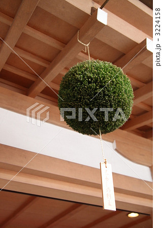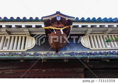 灘五郷の御影郷で営む白鶴酒造 白鶴酒造資料館(団体旅行のコース)玄関の杉玉(酒林)大神神社の賜りもの