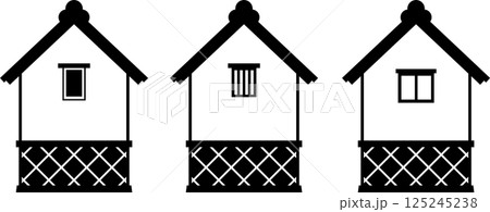 蔵・酒蔵・土蔵のイラストアイコン白黒