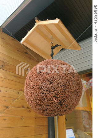酒屋の軒先に吊るされた酒林(さかばやし)