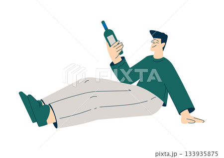 Man with Alcoholism Addiction as Social Problem Vector Illustration