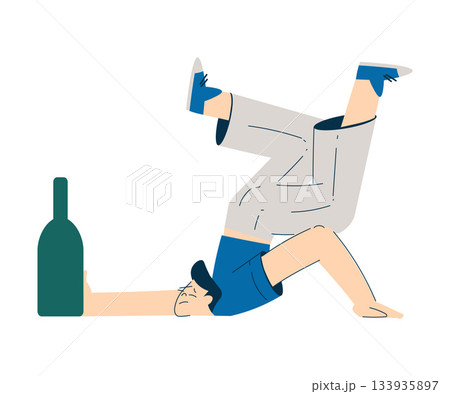 お酒を飲んで寝転がる男性のイラスト