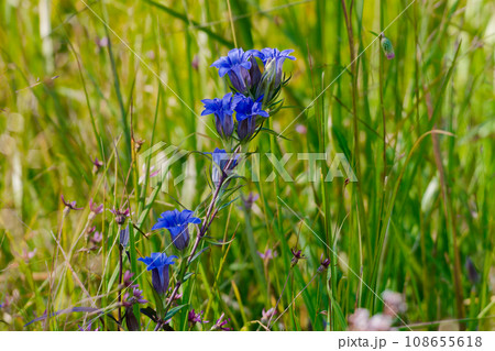 湿地型のリンドウ ホソバリンドウの群生