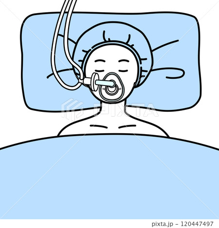 イラスト素材:酸素マスクを付けて入院しているシニア男性とシニア女性、高齢者