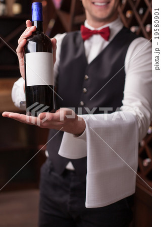 Cheerful young sommelier is showing perfect
