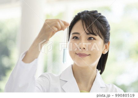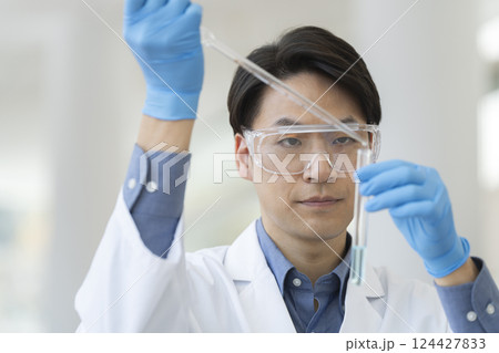 試験管を持って作業をする白衣の男性 実験 イメージ