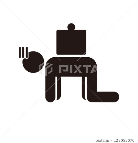 背中の袋の重さに跪く人のピクトグラムアイコン