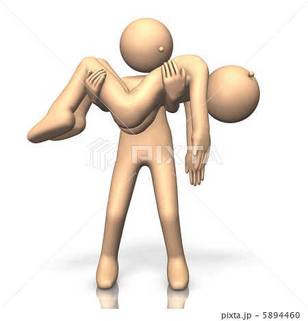 倒れた人を抱きかかえる人物。白バック。3Dレンダリング。