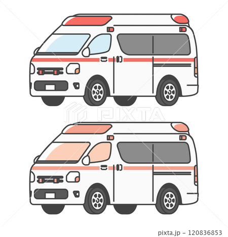 日本の救急車のイラスト(フルカラー・単色モノカラーのセット)