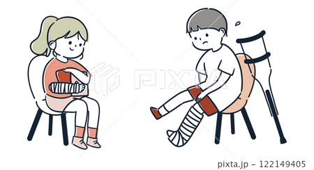 骨折してギプスを装着している子どもたちのシンプルでかわいいイラスト