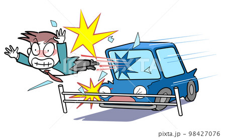 日本の救急車、衝突事故で壊れてしまったイラスト(フルカラー・単色モノカラーのセット)