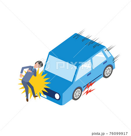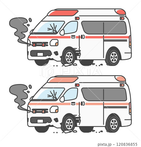 日本の救急車、衝突事故で壊れてしまったイラスト(フルカラー・単色モノカラーのセット)