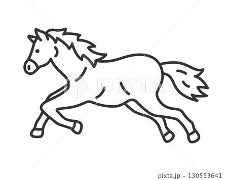 横から見た、走っている馬(線画)のイラスト