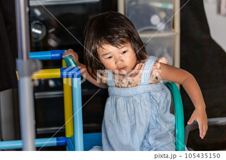 室内で遊んでる女児