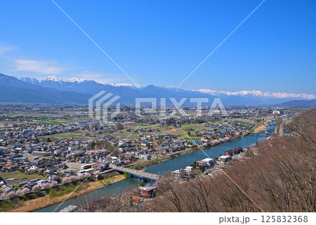 《長野県》松本市城山公園からの展望 残雪の北アルプスと松本盆地