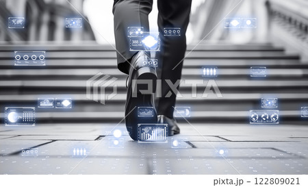 ビジネスプロフェッショナルの昇進、未来のテクノロジー、キャリアアップのテーマ