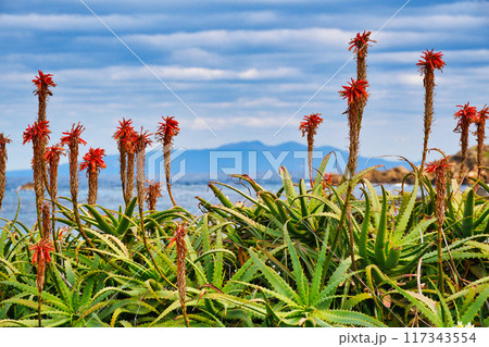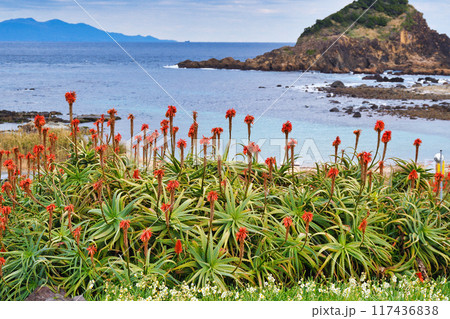 野水仙とアロエの花咲く遊歩道【静岡県下田市 爪木崎】