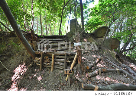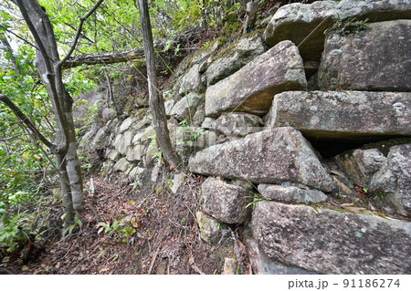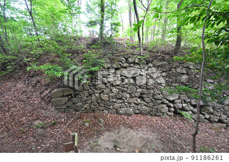 滋賀県 近江国「小堤城山城」の石垣と眺望