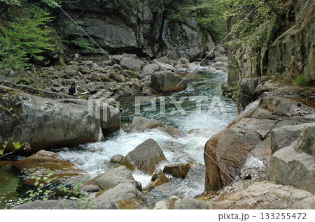 昇仙峡の上流、巨岩累々の野猿谷の渓流釣り