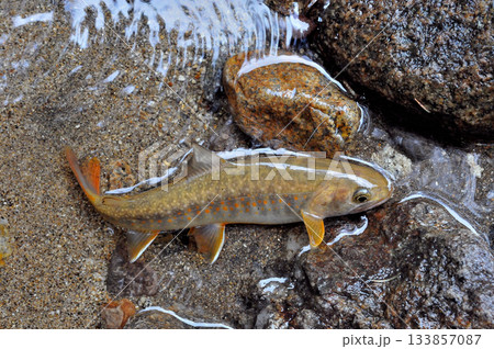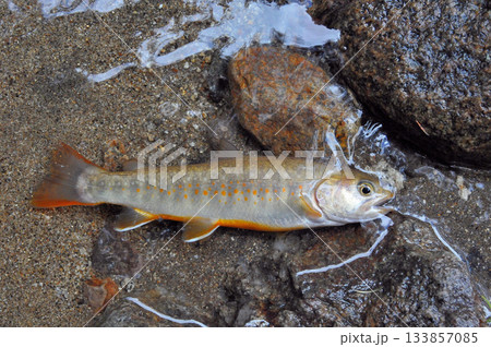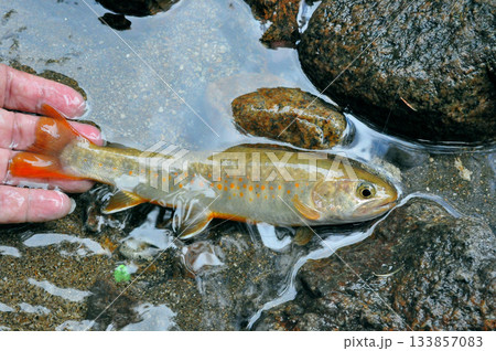 乙女鉱山の脇を流れる荒川で釣れた色の白い綺麗な岩魚