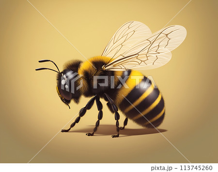 Vibrant macro image of a bee in flight, highlighting its delicate body, transparent wings, and detailed textures, perfect for stock and design use.