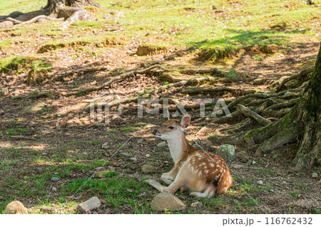 桜をバックにした鹿(メス) 奈良公園 奈良市