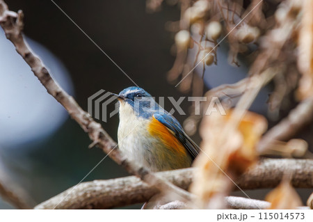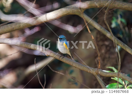 幸せの青い鳥、可愛いルリビタキ(ヒタキ科)。 日本国千葉県市川市、大町公園自然観察園にて。 202