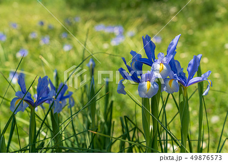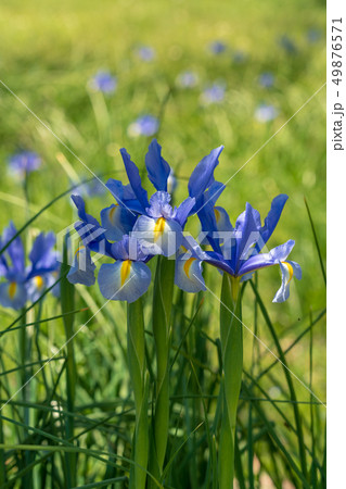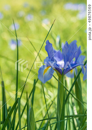 ノハナショウブ 野に咲く紫色の花 緑の自然背景