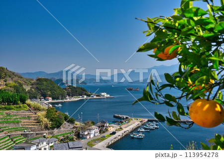 遊子水荷浦の段畑から望む絶景とみかん