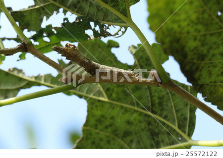 生き物 昆虫 クワコ、幼虫がヤマグワの木にいました。小枝か枯葉のように見える擬態が見事