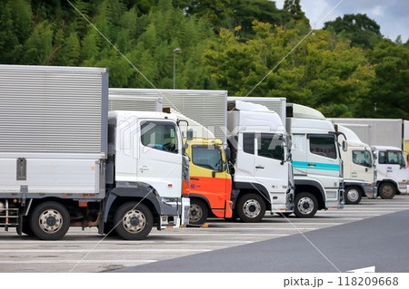 鉄道コンテナ輸送の大型トラック(越谷貨物ターミナル駅)