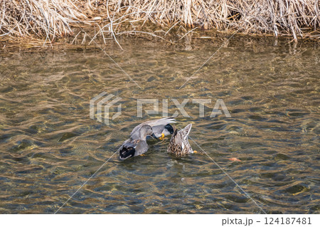 賀茂川(鴨川)で餌を探すシラサギ(コサギ) 京都市