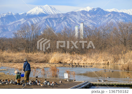 冬の安曇野 御宝田遊水池の白鳥と鴨