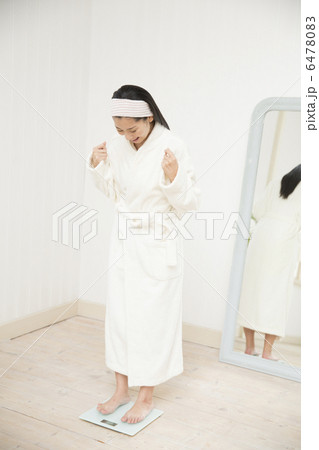 体重を計る若い女性