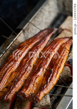炭火で鰻の蒲焼を焼く 中国産 ロストラータ種