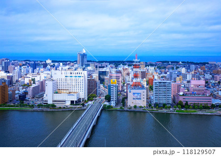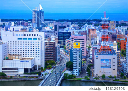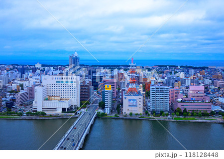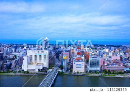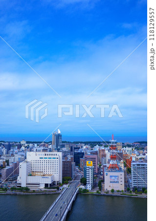 メディアシップ展望台より萬代橋とNEXT21方面の街並みを望む