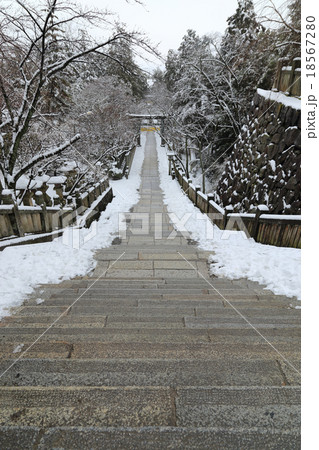 雪の金刀比羅宮、桜馬場西詰から下り、大門方向をみる