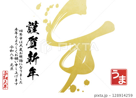 筆文字 年賀状 午(Happy New Year)元旦 印風 .n