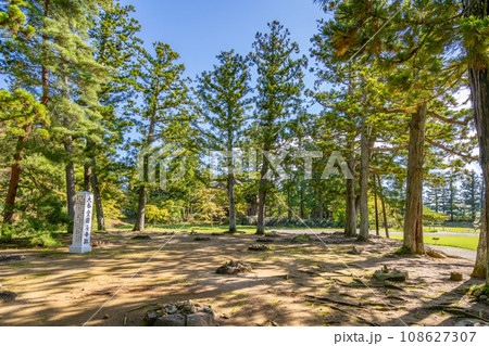 大金堂円隆寺の礎石と松と杉の古木 毛越寺 岩手県
