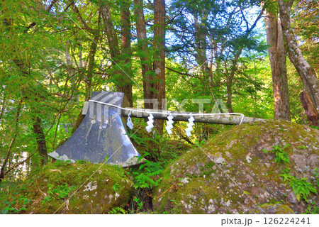 関東・箱根・金時山、公時神社ルートの登山口に建つ公時神社、境内のまさかり・神奈川県箱根町(2)