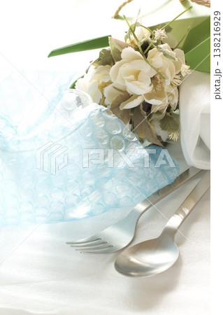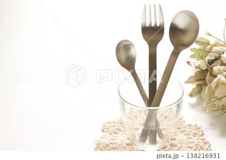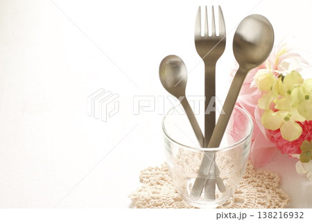 ガラスのコップとスプーンとフォーク