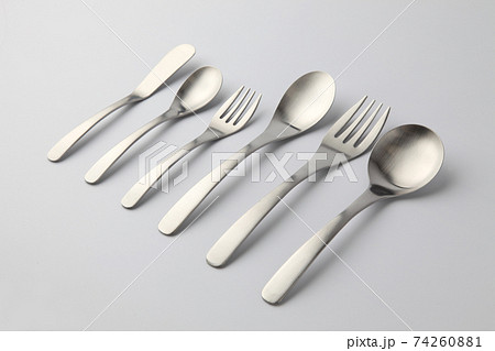 ステンレス製 スプーン フォーク カトラリー 白背景