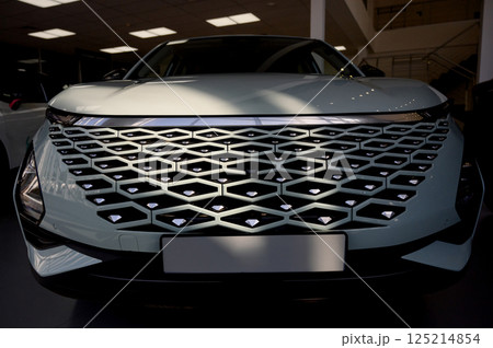 Futuristic electric truck with angular design display motor show, modern and innovative style