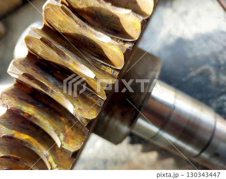 Close-up View of a Bronze Worm Gear Wheel Showcasing Intricate Details and Craftsmanship