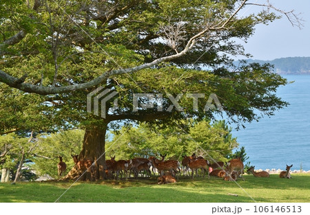 金華山の鹿の群れ 宮城