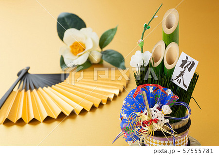 正月 門松 金扇子 2 (白バック)