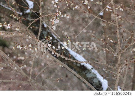 四国遍路の番外霊場。四国別格二十霊場第十五番札所「箸蔵寺」五大力尊と御影堂の間にある寒桜