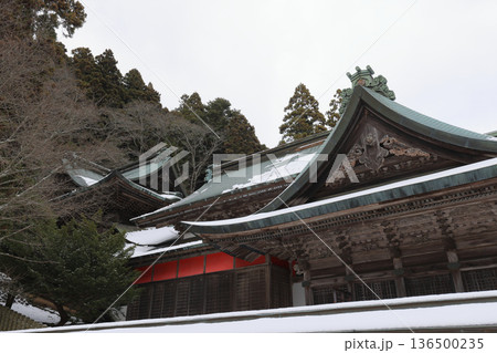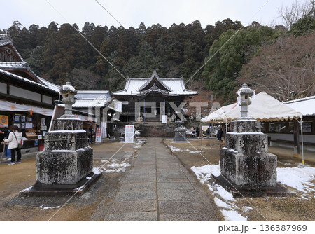 四国遍路の番外霊場。四国別格二十霊場第十五番札所「箸蔵寺」雪の護摩殿と納経所