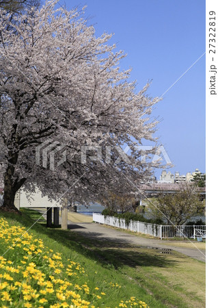 犀川河川敷の桜と菜の花