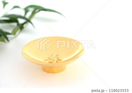 白バックの金杯・金杯ひとつ・金盃ひとつ