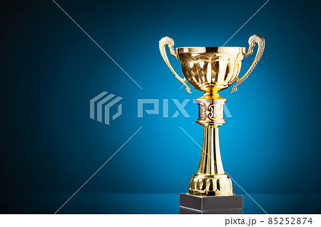gold cup trophy on blue background